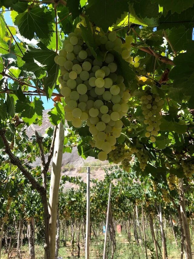 今から約150年前、最初にこの地域に水路を引きブドウ栽培を始めた家族から3代目となる現在は、3姉妹が醸造などを担当し、約10ヘクタールの畑に2種類のマスカット(モスカテル)種を栽培、無添加の白ワイン、その白ワインから造られるパハレテ(伝統的な甘口ワイン)、ピスコ(ブドウの蒸留酒)、ジンを造っています。ブドウはもちろんすべて手摘み。その他の工程も全て手作業で、使用している昔ながらの蒸留器やコンクリートタンクが目をひきます。ワイナリーの建物はとても古く、初代が使っていた農機具、ワインの保管に使っていた洞窟などを見ることができます。