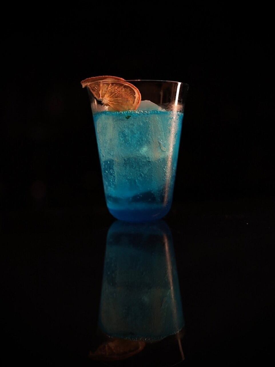 オレンジの果皮で作る「キュラソー」というリキュールを、青く着色したもの。青色は食用の色素であり、味には影響していない。