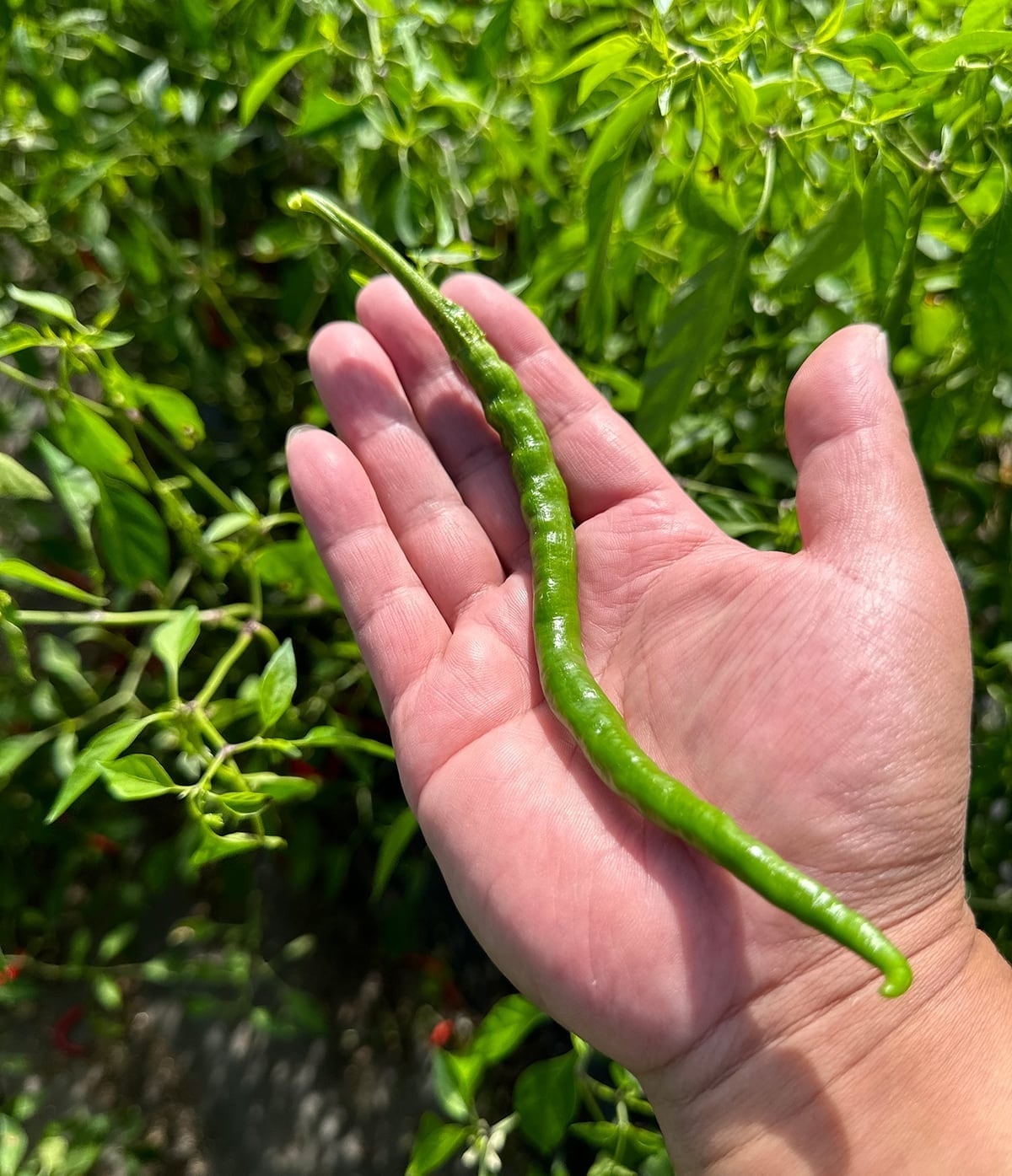 本来、秋口にかけて唐辛子が大きくなり、たくさん収穫できるはずですが、この年は、成長が止まって、干からびたり、成りの数が悪かったりと、苦戦しました。