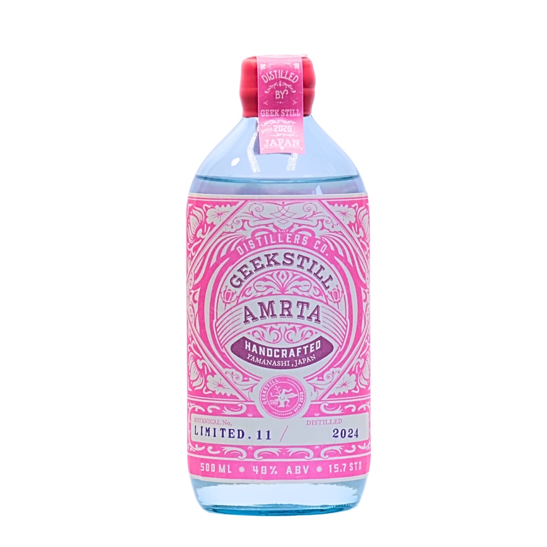 サンスクリット語で「万能薬」の意味を持つ「AMRTA(アムリタ)」。山梨の豊かな自然に囲まれた蒸留所「GEEKSTILL」でつくられており、山野のハーブや、フルーツ王国である山梨県のフルーツの風味など、山梨県の大自然の恵みをボトルに詰め込んだつくりとなっています。